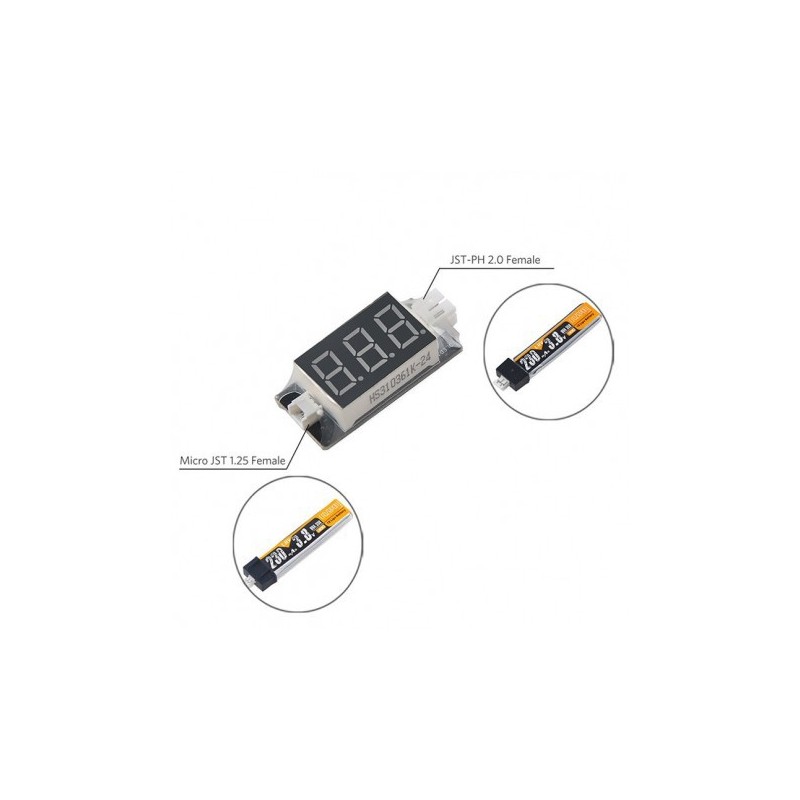 Lipo 1S batteries checker with JST 1.25mm and JST PH 2.0 plug and adapter