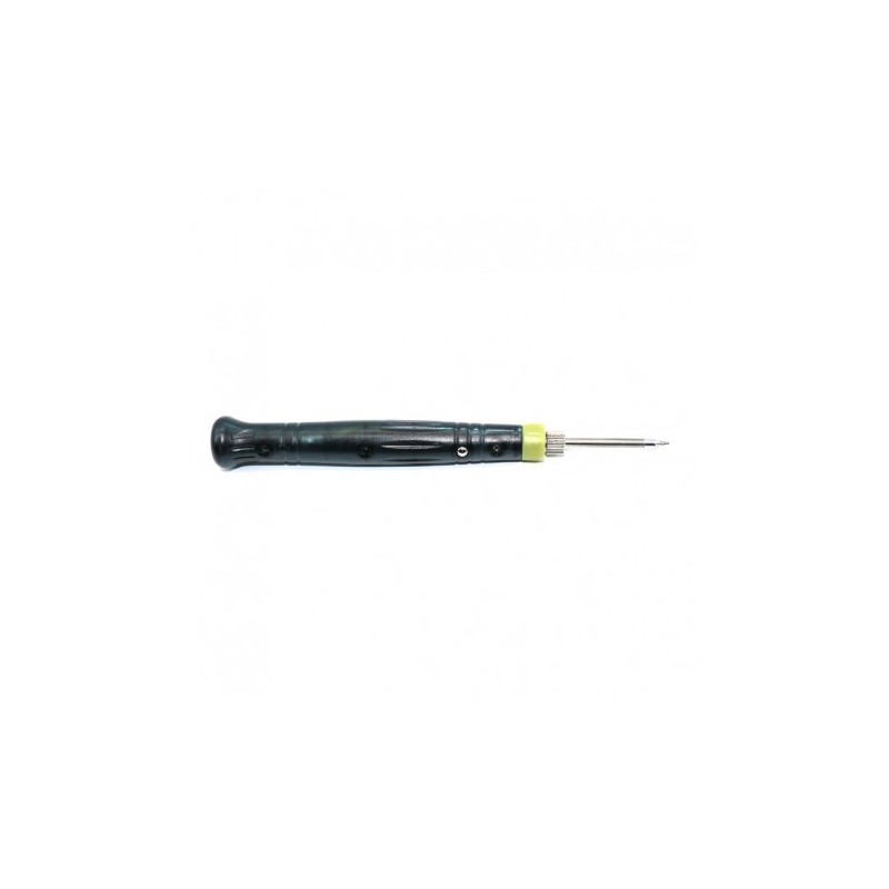 Mini entry level soldering iron with 5v USB power supply. Lightweight and small, it is easily movable and transportable. The base allows it to be placed at rest.