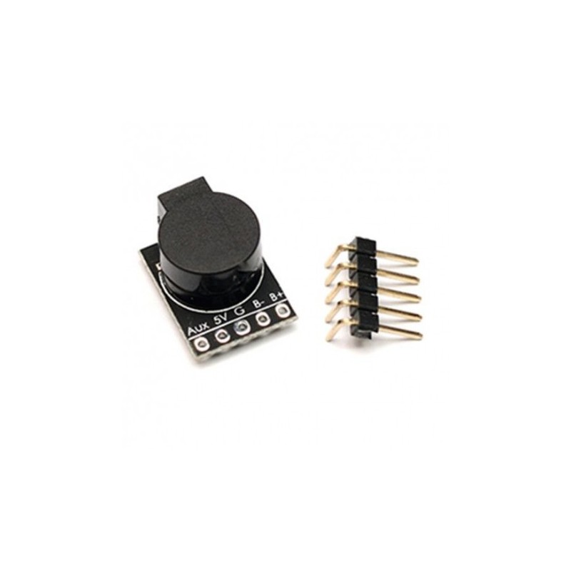 5V buzzer for racing drones. Check the schema for welds. To be powered with 5V from the flight controller and configure the switch or functions in Betaflight