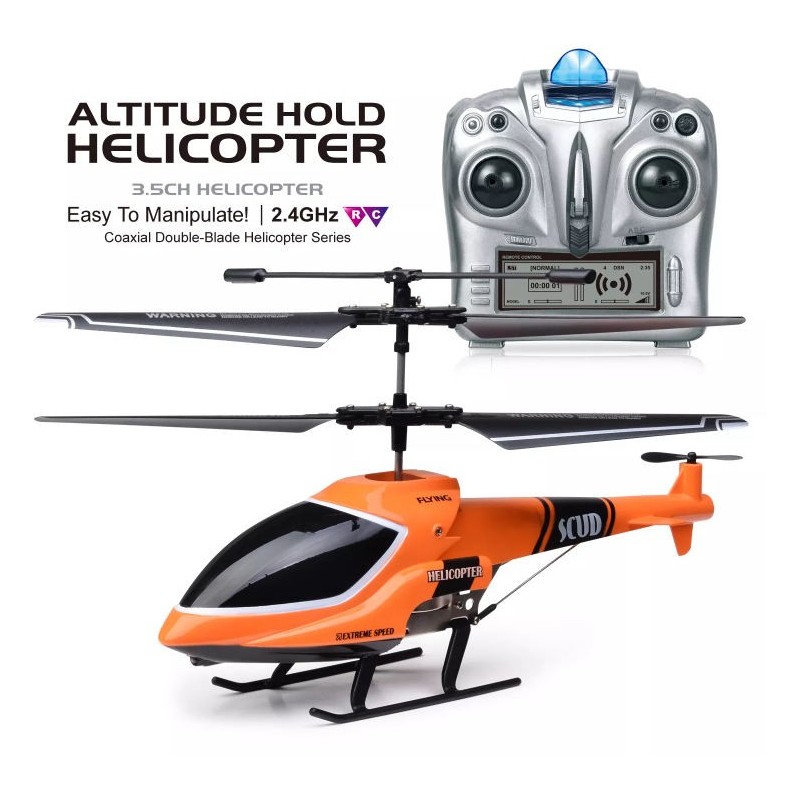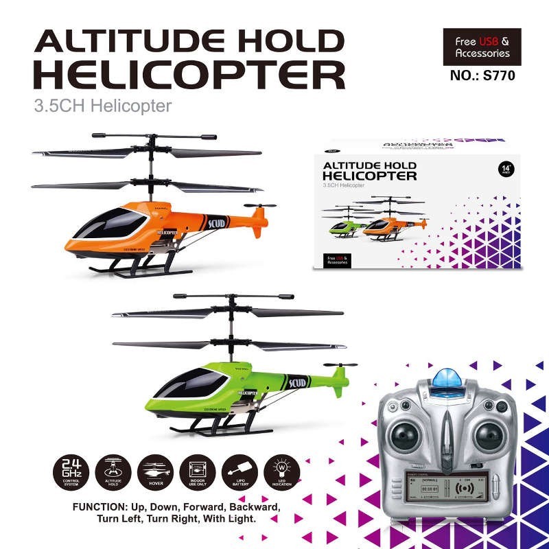 Small radio controlled helicopter in 2.4G. The altitude hold function maintains the altitude of the helicopter automatically and allows you to concentrate on the steering controls.