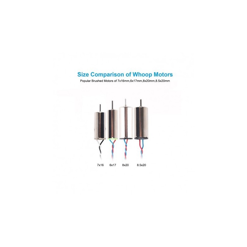 Set of two brushed 820 motor parts. Contains a CW motor and a CCW motor. Compatible with an 8mm motor frame and propellers with a hole diameter of 1mm.