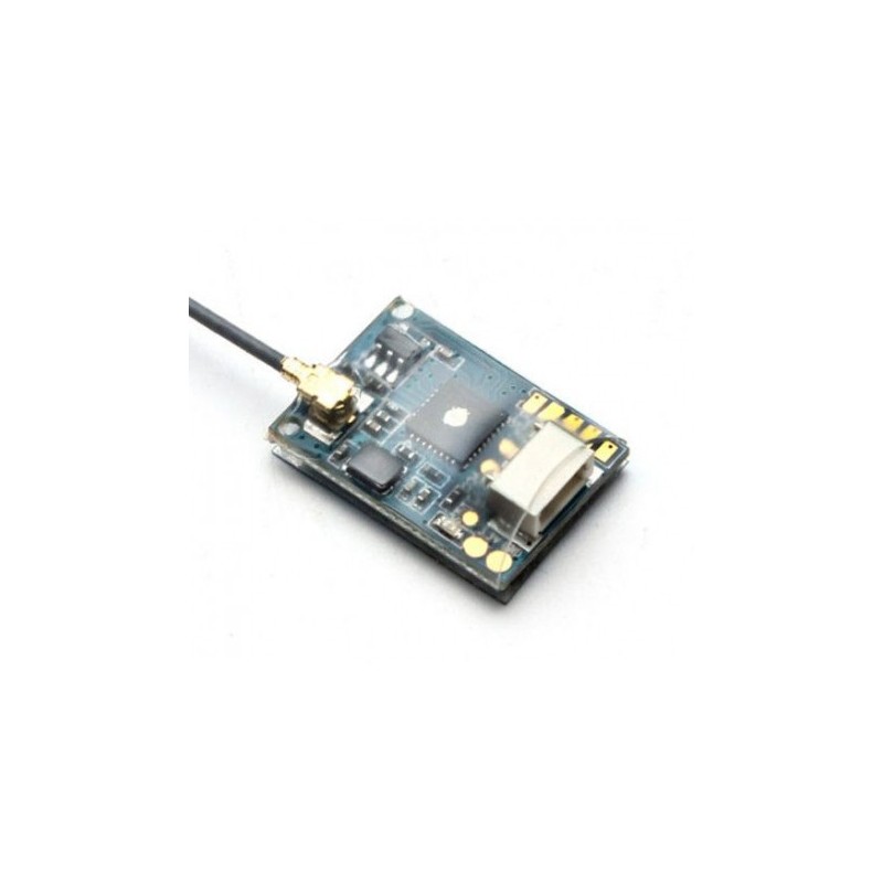 Mini Flysky radio receiver compatible PPM and IBUS AFHDS 2A. Weight of 1.2 grams and sized 2cm by 1.4cm, it is easy to find a place for it even on a mini quad.