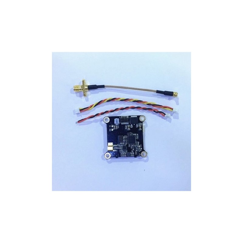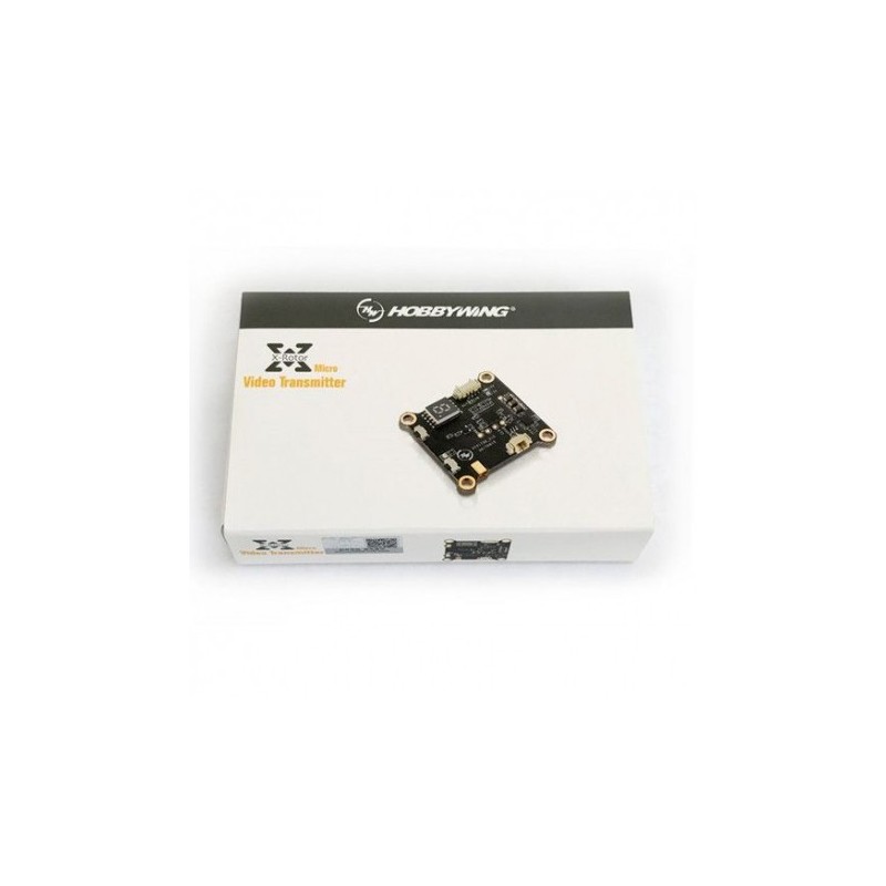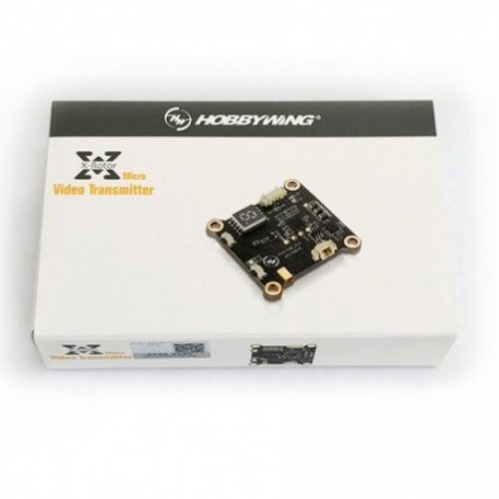 Video transmitter Hobbywing Xrotor 25 mW for mounting hole 30.5*30.5. Has 48 channels (5.3GHz - 5.9GHz). The input voltage can be 7V to 25V and the output voltage is adjustable from 5V or 12V to suit the camera. The weight is 5 grams.