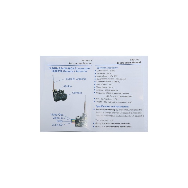 HCF9 Mini caméra FPV 600 TVL émetteur 5.8G 25mW 40ch