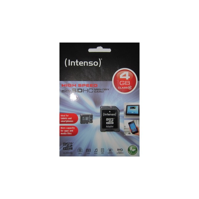 Contenu du Package | 1*carte micro SD 4GB Intenso - 1 * Adaptateur |