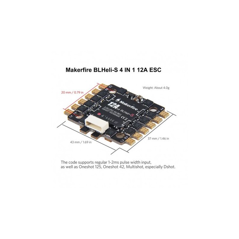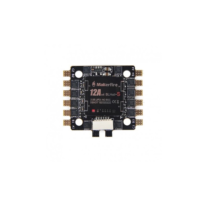 Contrôleur de vitesse électronique Makerfire 4 en 1 12a pour drone racing en kit. Tension d'entrée pour batterie 2-3S et trou de montage 20*20mm.