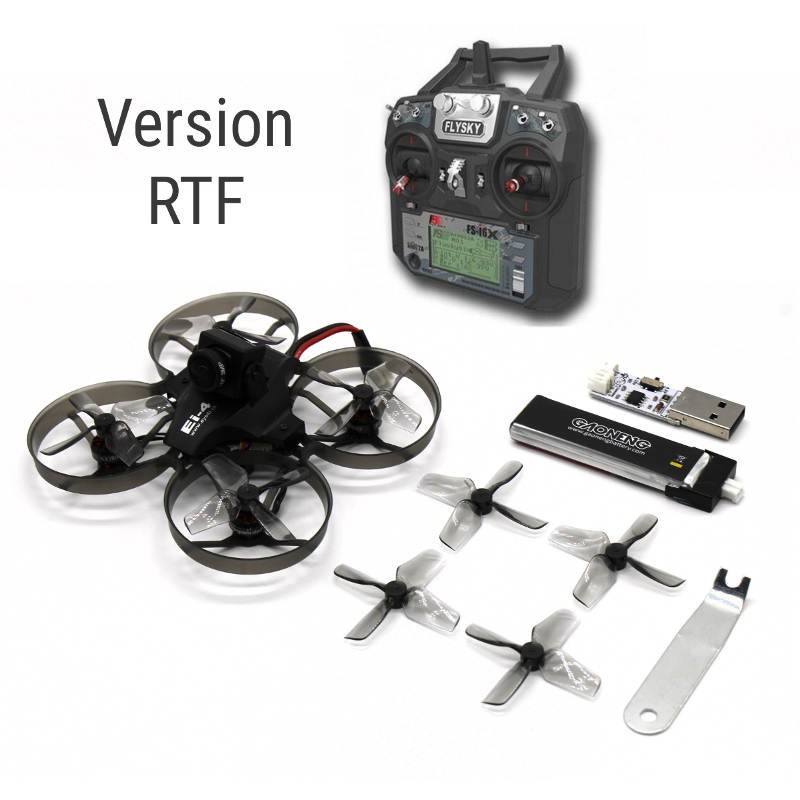 Le starling est disponible en version BNF Flysky ou RTF Flysky. Pour plus d'informations sur les acronymes, vous pouvez consulter notre lexique du drone.